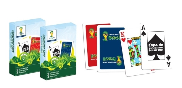 - O baralho oficial da Copa, produzido pela Copag, chegará ao mercado no fim deste mêsA Globo Marcas, empresa das Organizações Globo que detém o direito exclusivo de explorar em produtos diversos as marcas da Copa do Mundo de 2014 no Brasil, irá colocar no varejo brasileiro 1.500 produtos com o selo de artigo oficial do evento. Atéagora, 34 empresas já firmaram parceira com a Globo Marcas para fabricar os produtos.